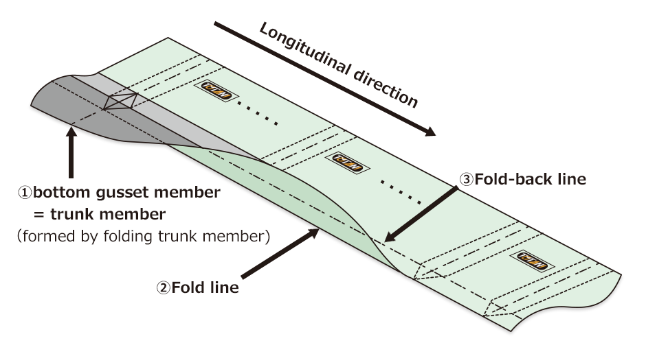 summary:bottom gusset portion is formed by folding trunk member