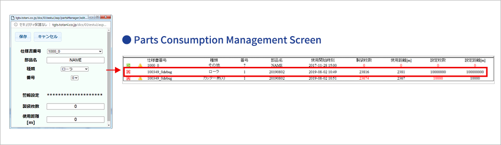 For parts registered in the parts consumption management data, click