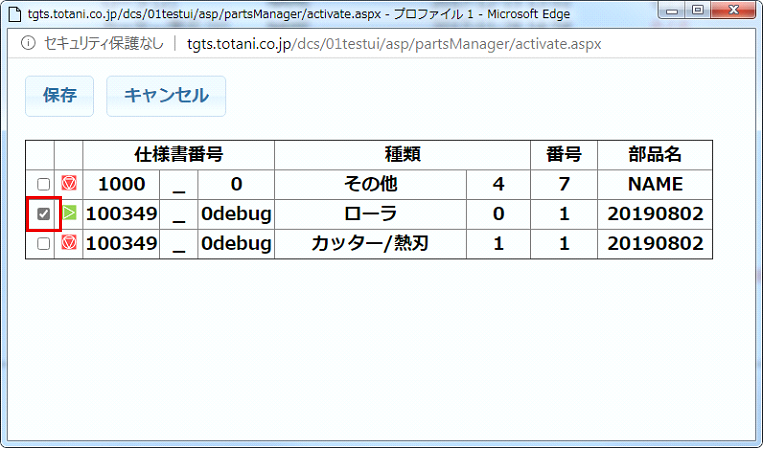 Enter the Specification No. , part name, number, number of pouch making, and set distance, then click the Save button, and the new part item will appear on the Parts Management screen.
